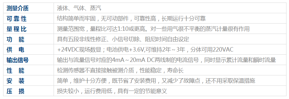 此外,渦街流量計的壓力損失小,量程范圍寬,對飽和蒸氣測量量程比可達10:1。