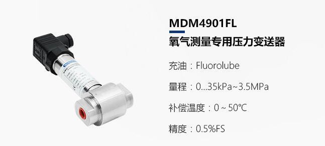MDM4901FL氧氣測量差壓變送器,針對氧氣壓力測量的應用要求,在保證產(chǎn)品潔凈的同時,產(chǎn)品內(nèi)部充灌了Fluorolube?油。該充灌介質(zhì)的使用防止了硅油與氧氣發(fā)生氧化反應, 有效防范爆炸的發(fā)生。同時在整個產(chǎn)品生產(chǎn)過程中采用禁油工藝,保證產(chǎn)品整機可以滿足氧氣的測量要求。